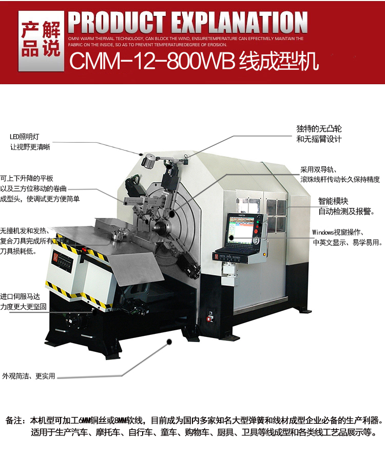 永騰線材折彎?rùn)C(jī)CMM-12-800WB和目前市場(chǎng)上其它品牌的7軸線成型機(jī)比,有明顯的五大優(yōu)勢(shì):