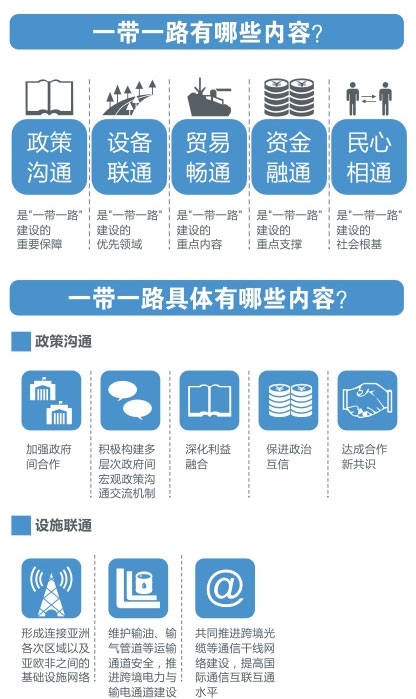 “一帶一路”建設(shè)是一項(xiàng)系統(tǒng)工程,要堅(jiān)持共商、共建、共享原則,積極推進(jìn)沿線國家發(fā)展戰(zhàn)略的相互對接。為推進(jìn)實(shí)施“一帶一路”重大倡議,讓古絲綢之路煥發(fā)新的生機(jī)活力,以新的形式使亞歐非各國聯(lián)系更加緊密,互利合作邁向新的歷史高度,中國政府特制定并發(fā)布《推動(dòng)共建絲綢之路經(jīng)濟(jì)帶和21世紀(jì)海上絲綢之路的愿景與行動(dòng)》。
